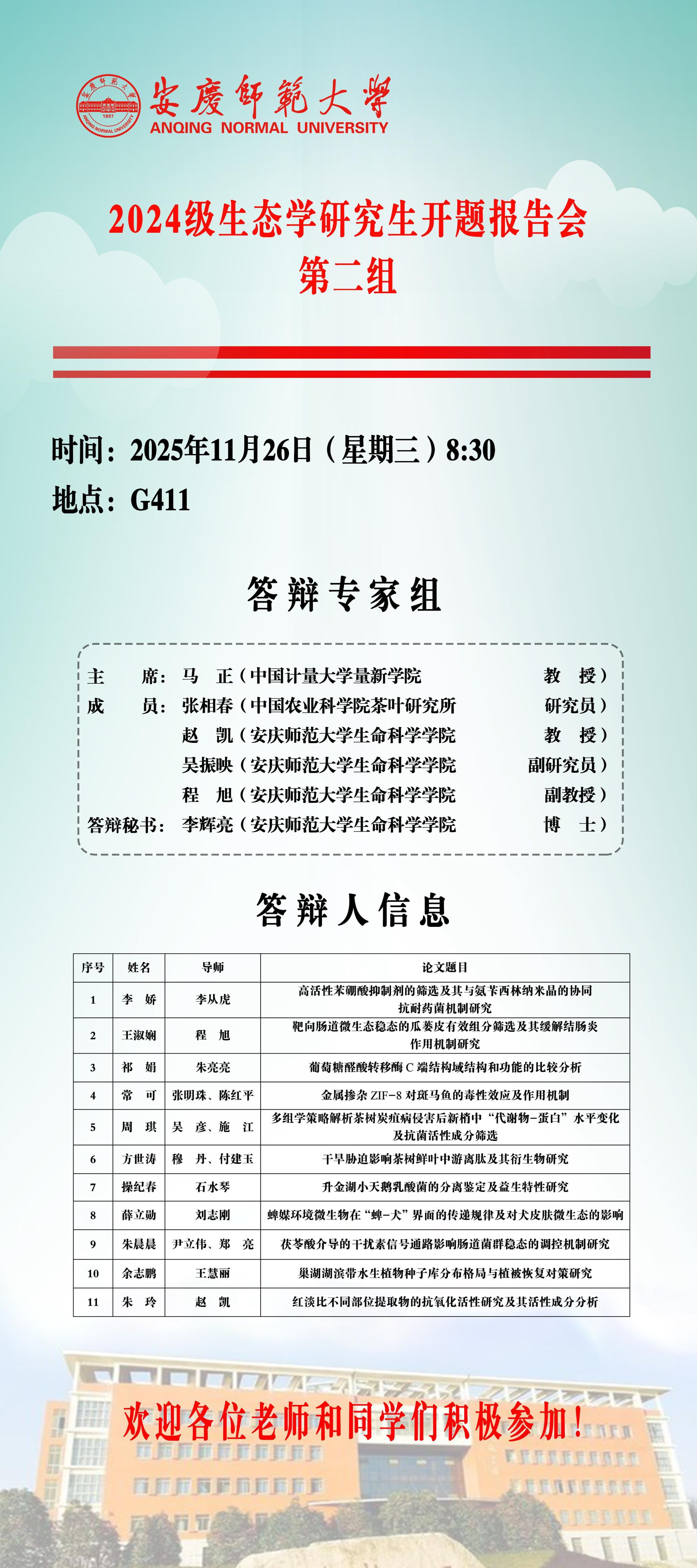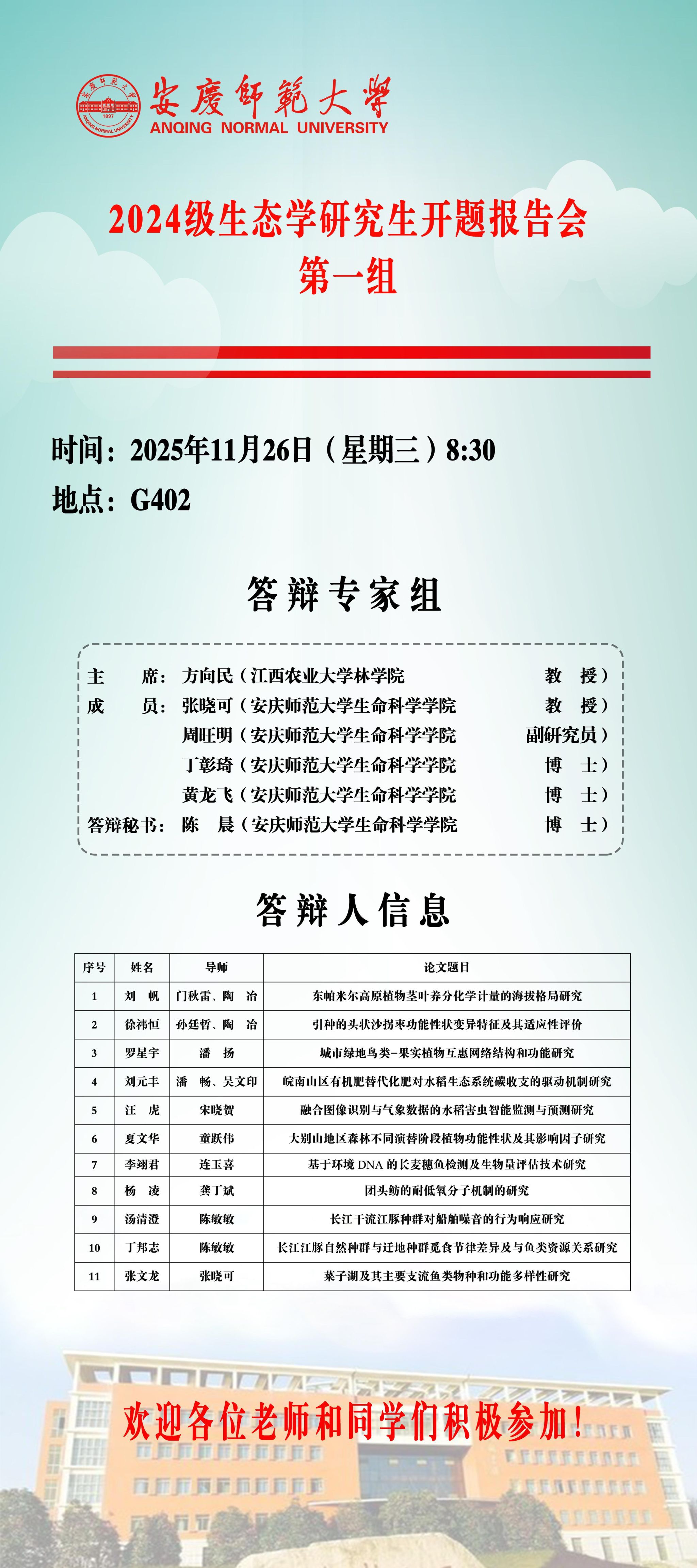 生命科学学院2024级硕士研究生学位论文开题答辩安排
