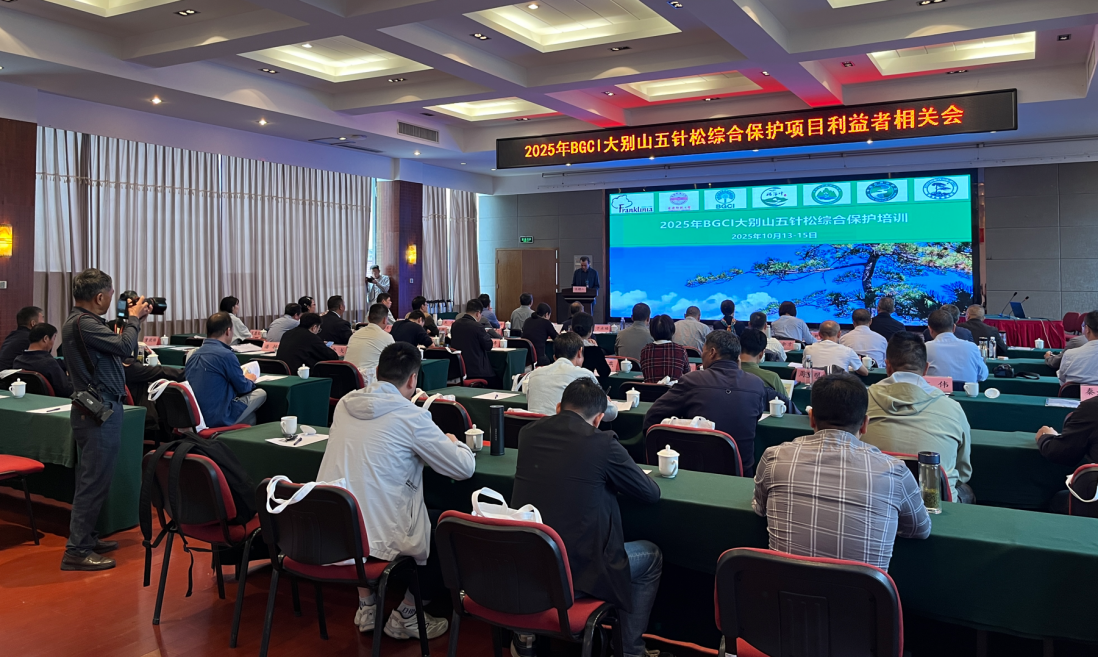2025年10月13-15日,由安庆师范大学生命科学学院主办,国际植物园保护联盟(BGCI)悉心指导的“2025年BGCI大别山五针松综合保护项目利益者相关会”在岳西县成功召开。本次会议汇聚了国际植物园保护联盟、中国野生动物保护协会、中国科学院植物研究所、安徽省林业科学研究院、安徽省林业局、安庆市林业局等 10 余家单位的领导、专家学者、一线工作人员及学生代表,共同探讨和高效推进国家一级保护植物大别山五针松的综合保护。